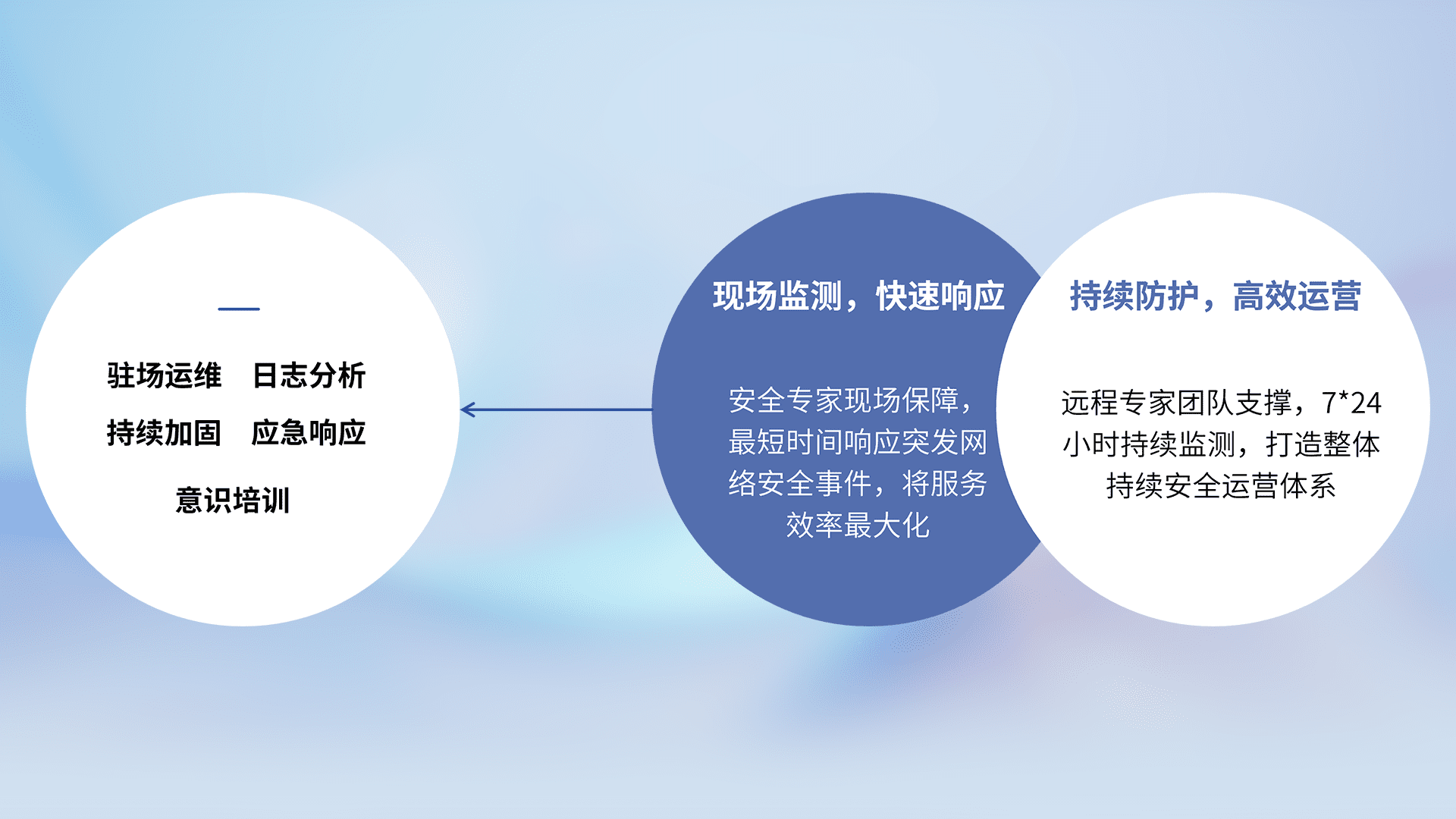 7X24小时持续监测安全事件,保持安全策略有效性,降低资产脆弱性风险,,,精准拦截黑客攻击,,减少被黑客利用的机会,,,第一时间遏制,,,,降低损失。。。